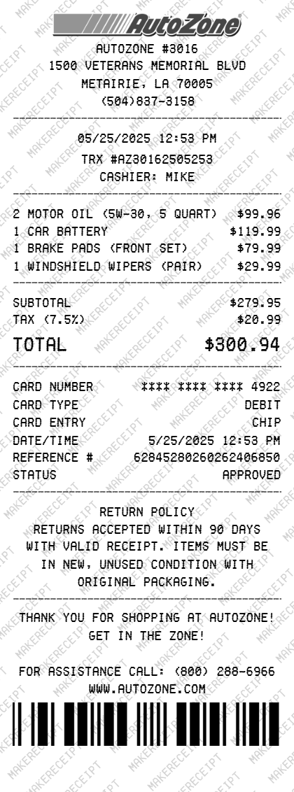 More Automotive Receipt Templates